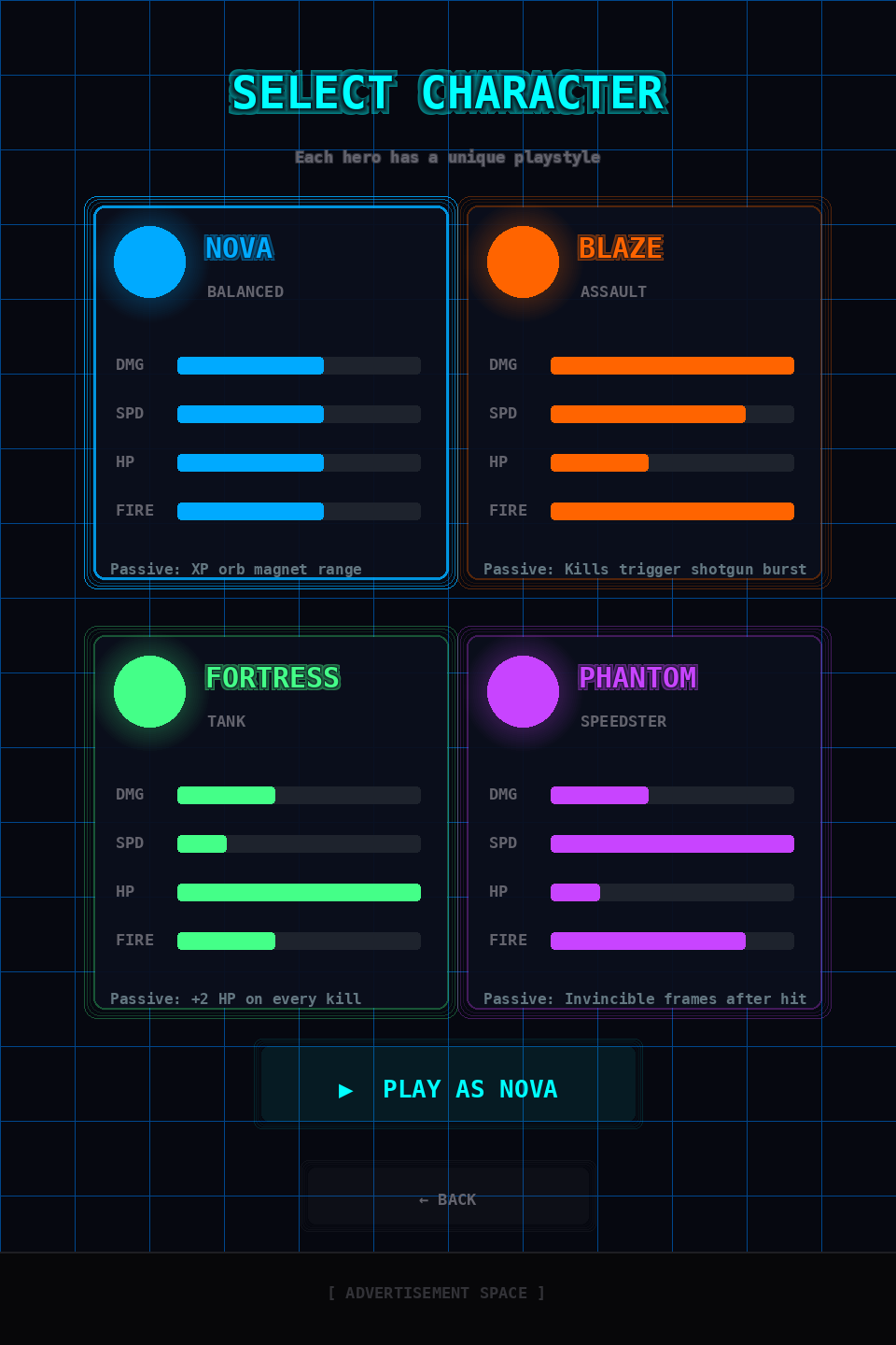 | ๐ป PHANTOM | Speedster | Gains brief invincibility after damage |