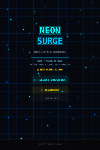 NEON SURGE is a fast-paced auto-battle survival game inspired by Vampire Survivors and Survivor.io.